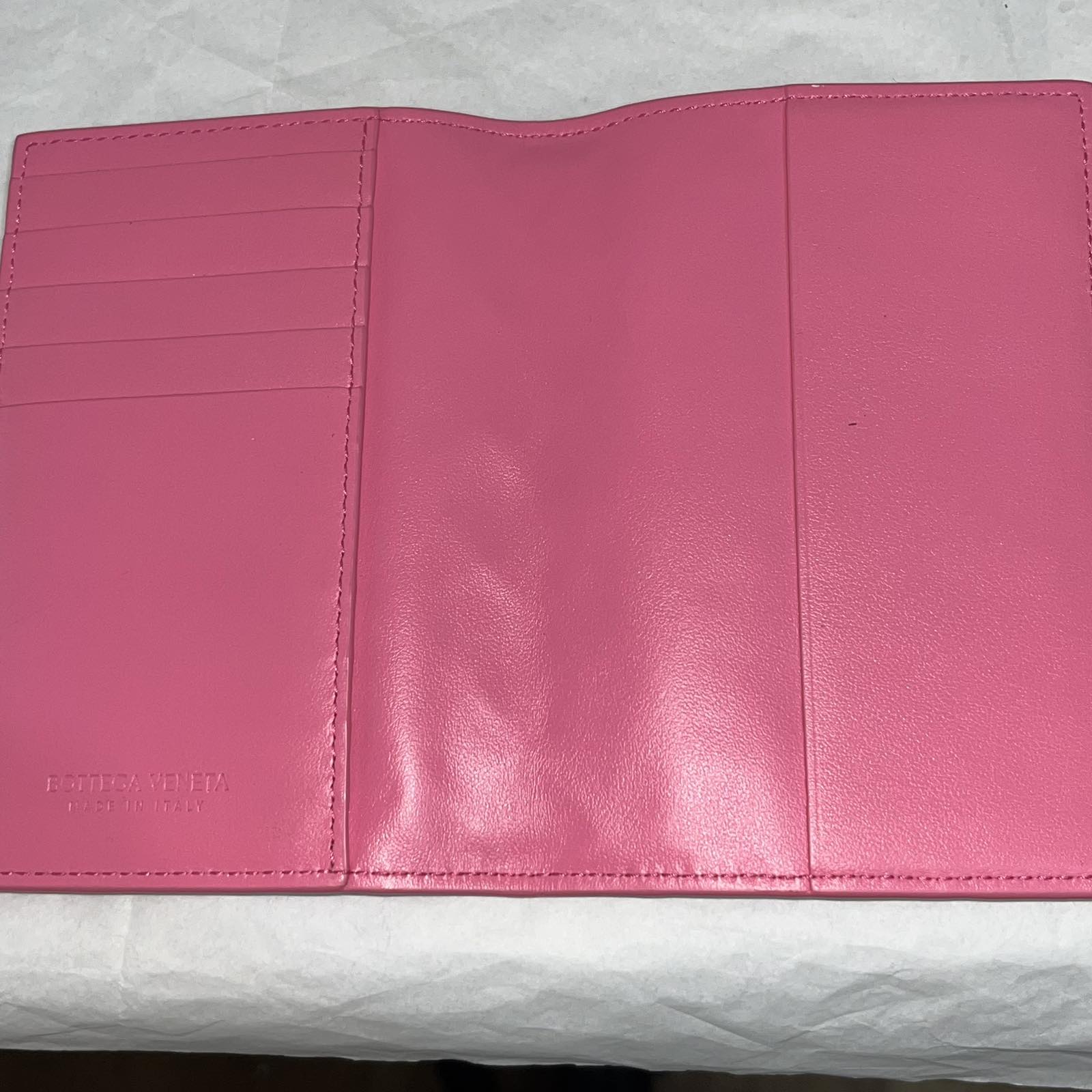 Bottega Veneta Passport Holder, Pink β 5.5"H x 3.9"L