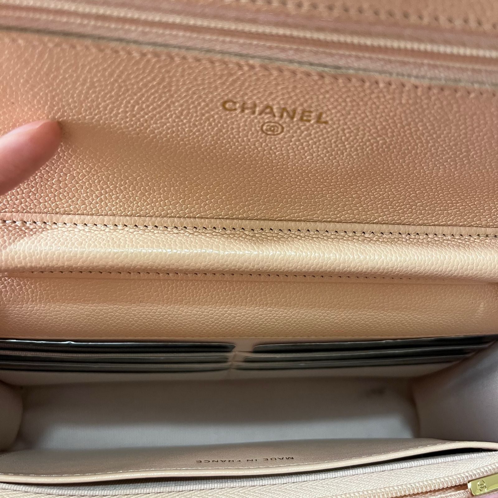 Chanel Classic Wallet On Chain Caviar Light Beige β 5"H x 7.5"L x 1.5"W